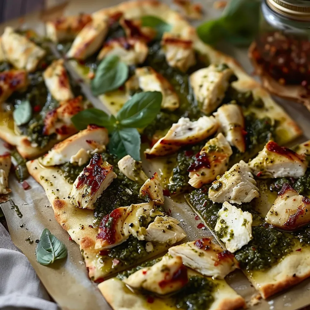 Picture a sun-drenched summer day, where laughter fills the air, and good food is essential to the experience. Pesto Chicken Flatbread is the perfect dish for those leisurely afternoons, whether you’re hosting friends for a casual barbecue or enjoying a quiet dinner with family. This flatbread brings the taste of Italian cuisine into your home, making every bite a celebration.