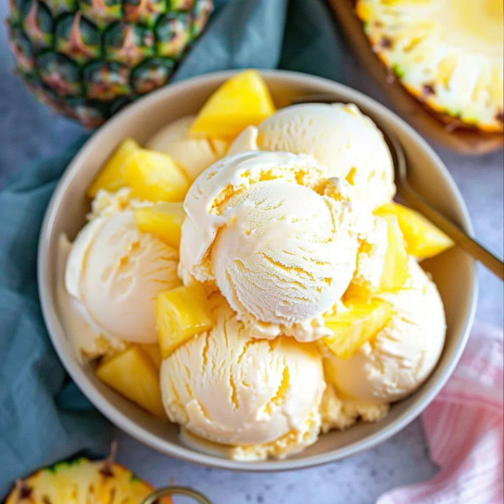 - Once set, scoop the pineapple ice cream into bowls or cones and garnish as you like. Enjoy your tropical creation!