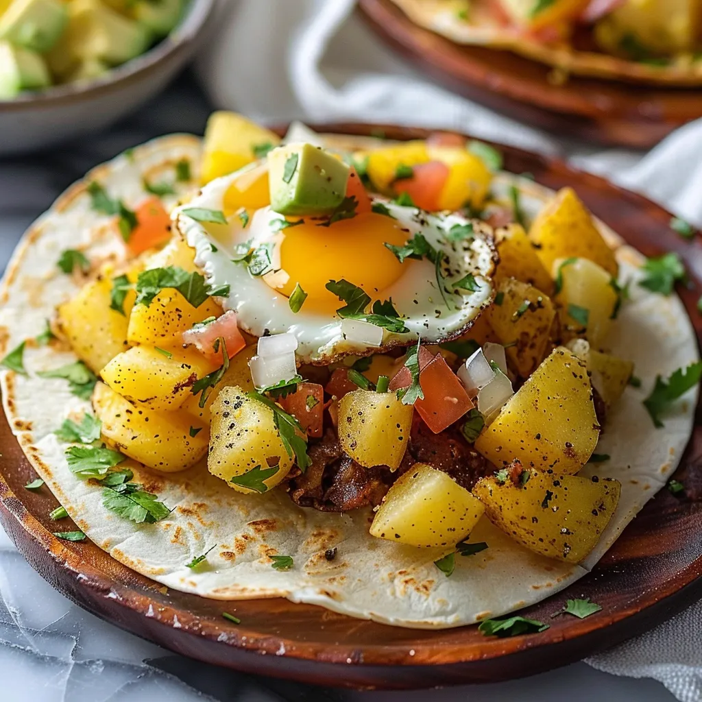- Assemble the Tacos: Scoop a generous amount of the potato and egg mixture onto each tortilla. Top with any additional garnishes you like.