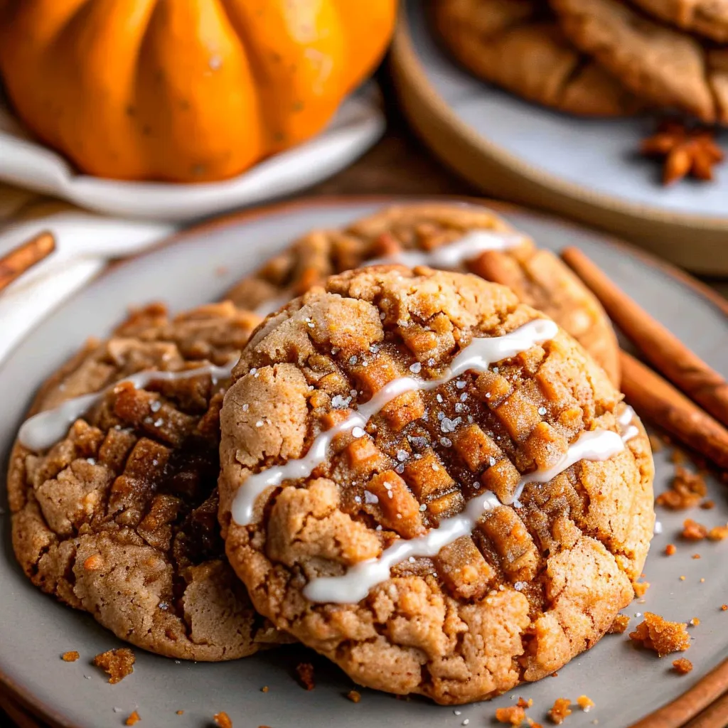 The profile of these cookies is simply delightful. With the warm flavors of cinnamon, nutmeg, and ginger intertwined with the rich, earthy taste of pumpkin, each bite is a taste of autumn. The texture is soft and chewy, akin to a coffee cake, but still maintains a cookie form that makes them easy to enjoy. The sweet crumb is complemented by a slight crumb topping that adds a lovely crunch, creating the perfect balance in flavor and texture.