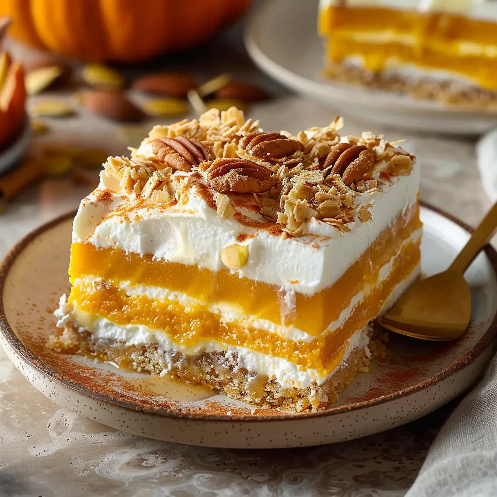 Savor Delicious Pumpkin Delight with creamy layers today Indulge in this seasonal treat for a delightful taste experience Perfect for autumn cravings