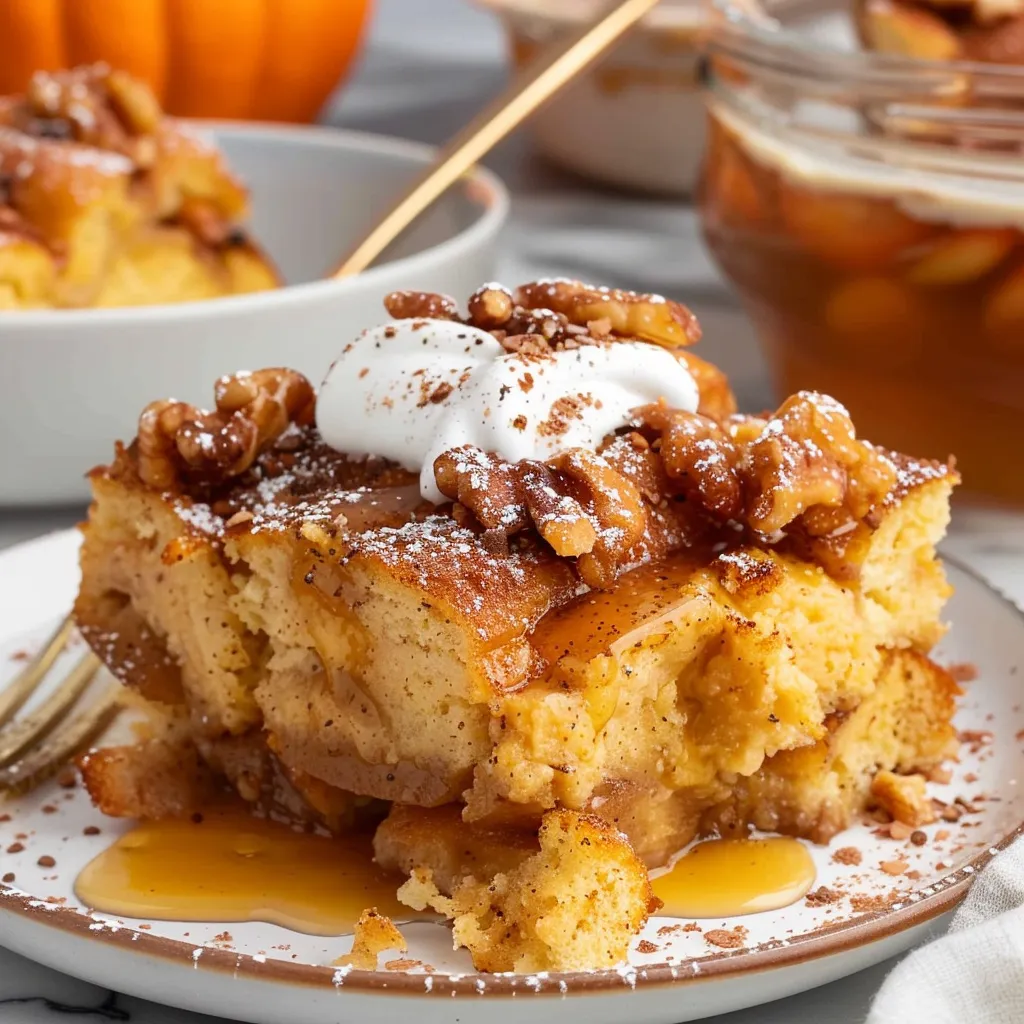 What sets this recipe apart is its simplicity and ability to please a crowd. With layers of bread soaked in a rich mixture of pumpkin puree and spices, topped with a delightful crunch, it’s an easy yet impressive centerpiece for any table. Not to mention, it’s a fantastic way to make use of leftover bread and brings a comforting warmth that resonates through shared moments.