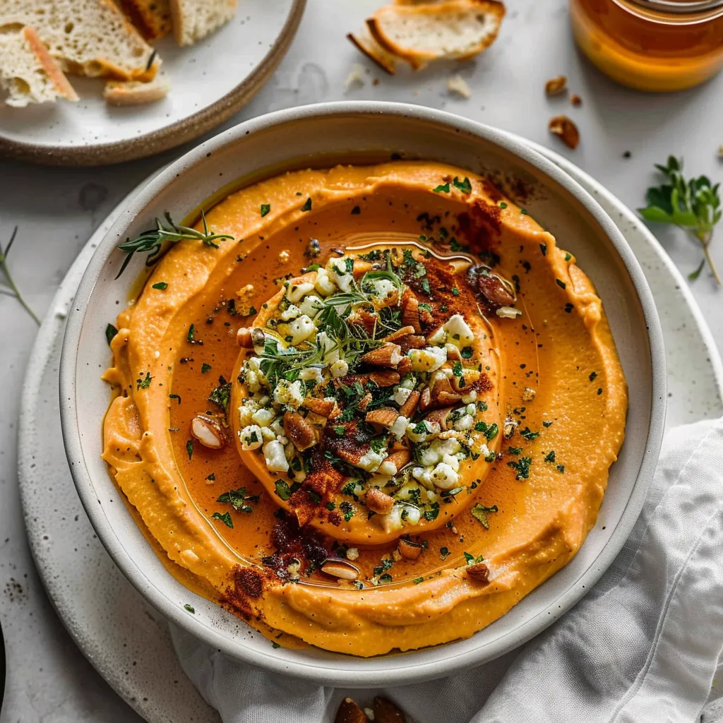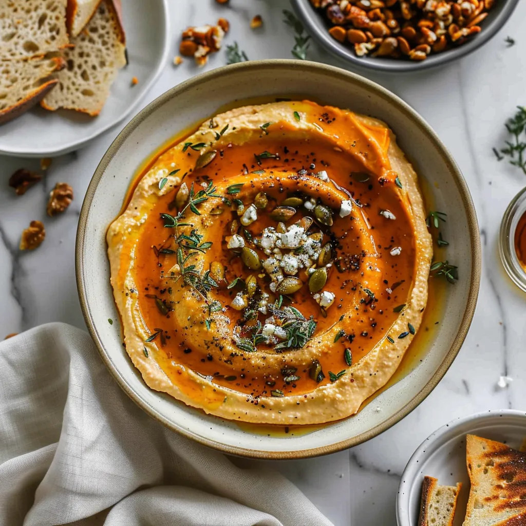Now let’s talk flavor. Picture this: you take a spoonful, and the first thing that hits you is the creamy tartness of whipped feta, perfectly complemented by the sweet earthiness of pumpkin. It’s like a warm hug after a long day, with a slight tang from the feta that keeps things lively on your palate. With a hint of garlic and a sprinkle of spices, every bite is an invitation to cozy up further into that blanket, savoring the moment. The dip is smooth and velvety, yet the differences in textures keep it interesting; the creaminess of the cheese mingles beautifully with the buttery softness of the pumpkin, creating a tasting experience that feels like a celebration of fall. Trust me, it’s going to be your new go-to for everything from snack time to festive dinners.
