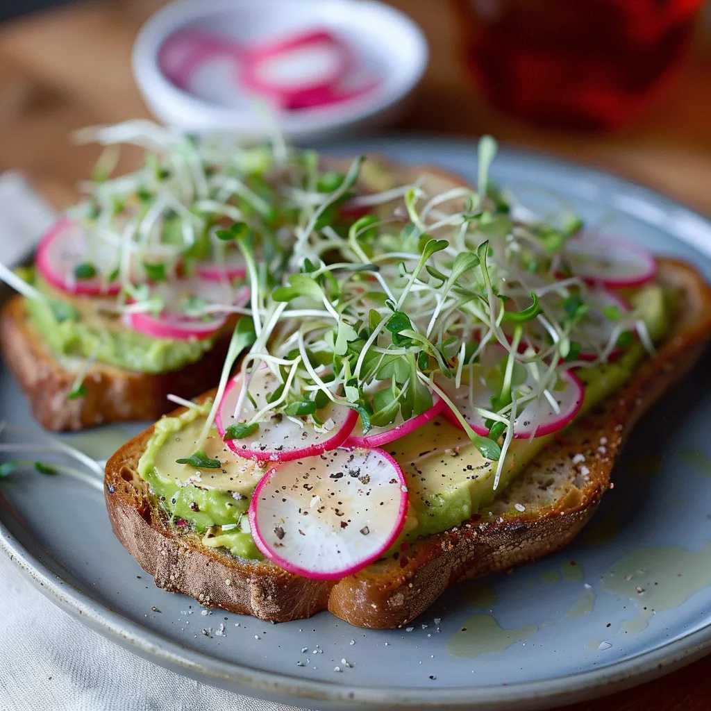 Let me paint a picture for you: as you take that first mouthful, you’re greeted by the creamy, buttery softness of the avocado—it’s like a gentle hug. Then, the radishes add a refreshing crunch, bringing a burst of zing that wakes up your senses. The microgreens bring a lightness and earthy flavor, while the sprinkle of sea salt lifts everything just the right amount. It’s playful, it’s vibrant, and it feels like a sun-drenched picnic on a perfect day. Each bite is a little reminder that food can be both nourishing and exhilarating.