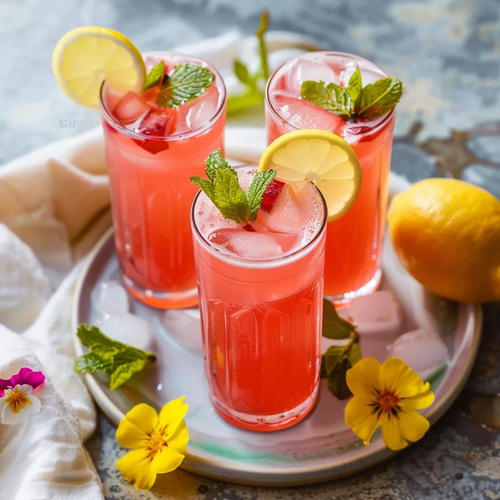 Quench your thirst with this tangy rhubarb lemonade recipe, perfect for hot summer days. A refreshing drink that’s easy to make!