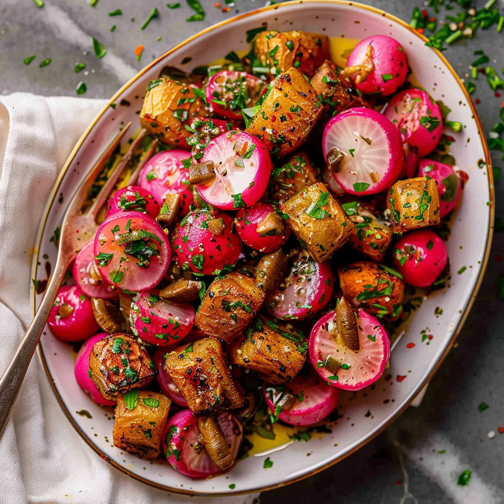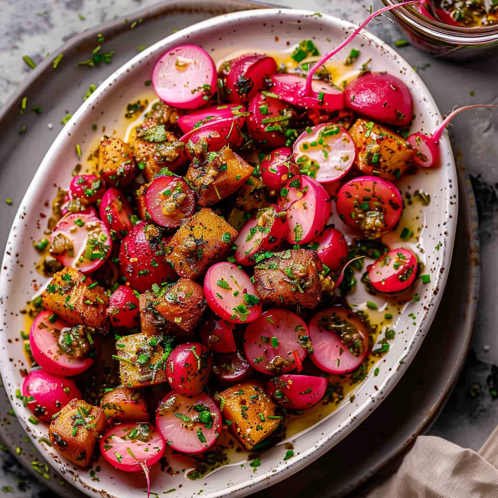 As the oven timer dings and you take a whiff of those perfectly roasted radishes tossed with anchovy herb butter, you’ll feel compelled to sit down and savor every glorious bite. It’s a dish that not only warms your belly but brightens your heart. Whether you’re sharing it with loved ones, serving it at a festive gathering, or treating yourself to a simple dinner, this recipe encapsulates everything I love about home cooking: warmth, comfort, and that unmistakable feeling of connection. So, roll up your sleeves, get roasting, and please share your experiences in the comments. I can’t wait to hear how your radishes turned out!