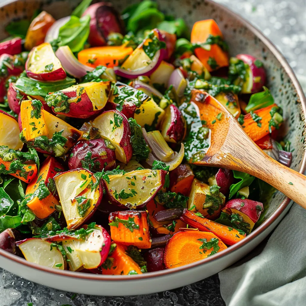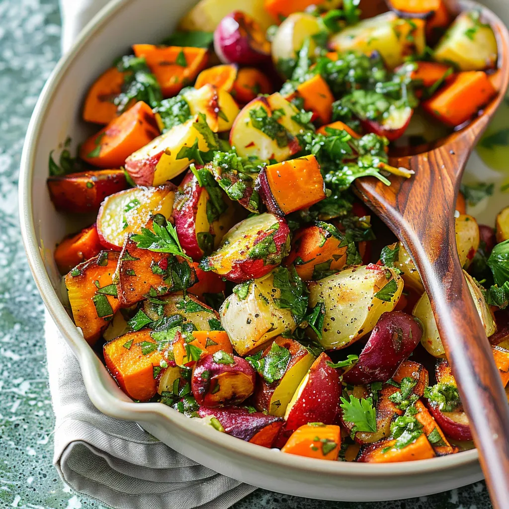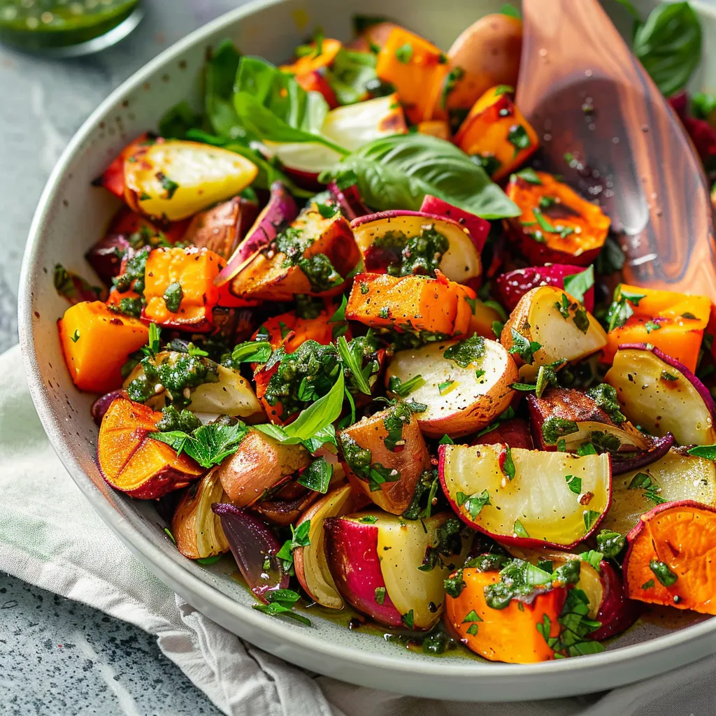 Savor roasted root veggies paired with zesty chimichurri. A perfect dish for any meal, bursting with flavor and fresh herbs. Try it today!
