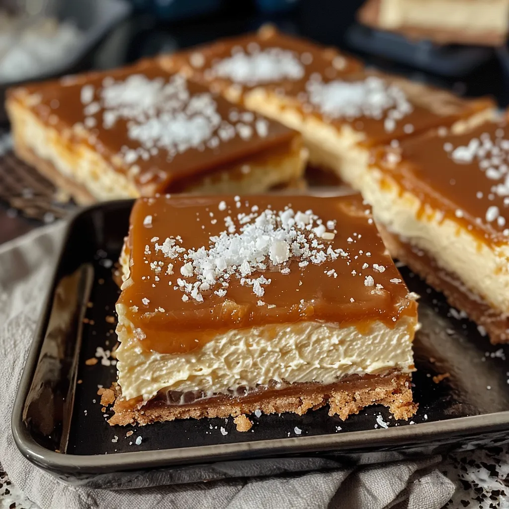Indulge in irresistible salted caramel cheesecake bars Perfect for sharing or a sweet personal treat A rich blend of flavors awaits you