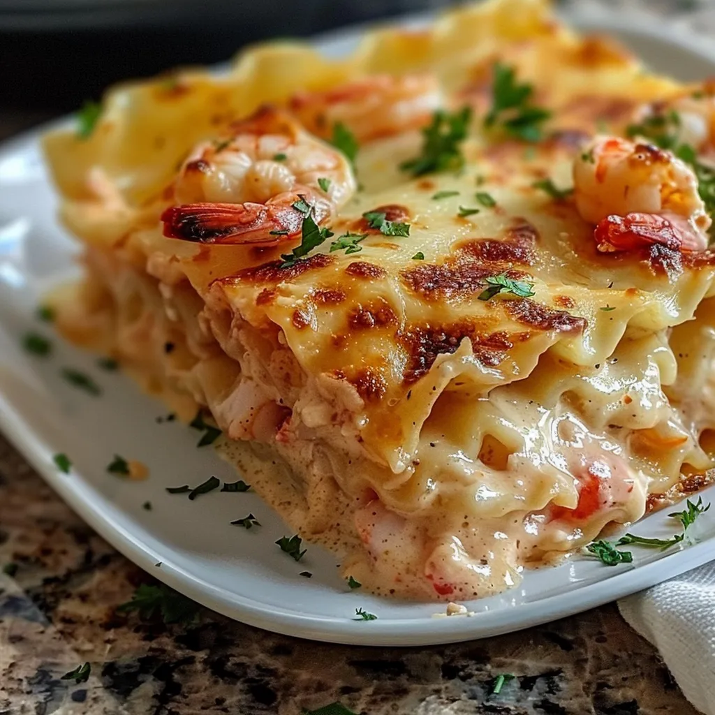 Indulge in a delightfully rich lasagna featuring lobster shrimp a seafood lovers dream dish Perfect for special occasions or everyday meals