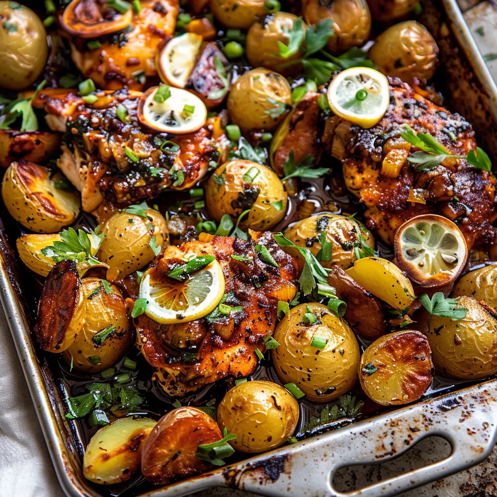 Discover a quick, savory recipe for Sheet Pan Lemon Balsamic Chicken & Potatoes. Perfect for weeknight dinners, packed with flavor! 155 chars