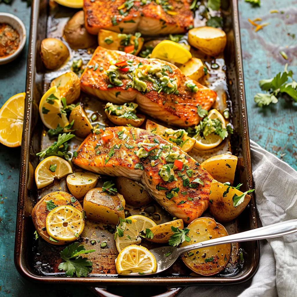 This vibrant dish of Sheet Pan Salmon with Citrus Avocado Salsa and Potatoes is quick to prepare and delivers restaurant-quality flavors with minimal cleanup. Perfect for busy weeknights or cozy family dinners.