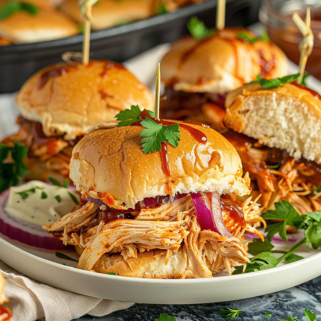 Delicious BBQ chicken sliders made in a slow cooker. Perfect for gatherings, these sliders are sure to satisfy your cravings at every bite.
