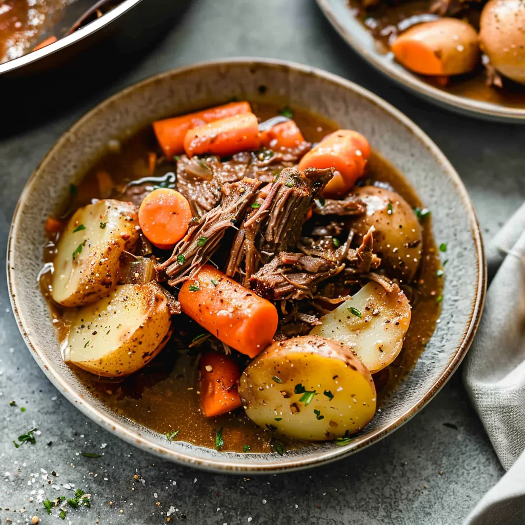 Okay, you might be asking, “What exactly does this pot roast taste like?” Imagine that first warm bite of comfort after a long day. The beef is juicy and tender—almost melts in your mouth—seasoned beautifully with thyme, rosemary, and a hint of garlic. The carrots add a delicious sweetness, while the potatoes soak up all the savory goodness, creating a hearty, soul-satisfying experience. Each bite tells a story, evoking that cozy Sunday dinner at Grandma’s house or those family reunions. It’s a dish that wraps around you like a snug blanket on a cold winter night. Sounds heavenly, right?
