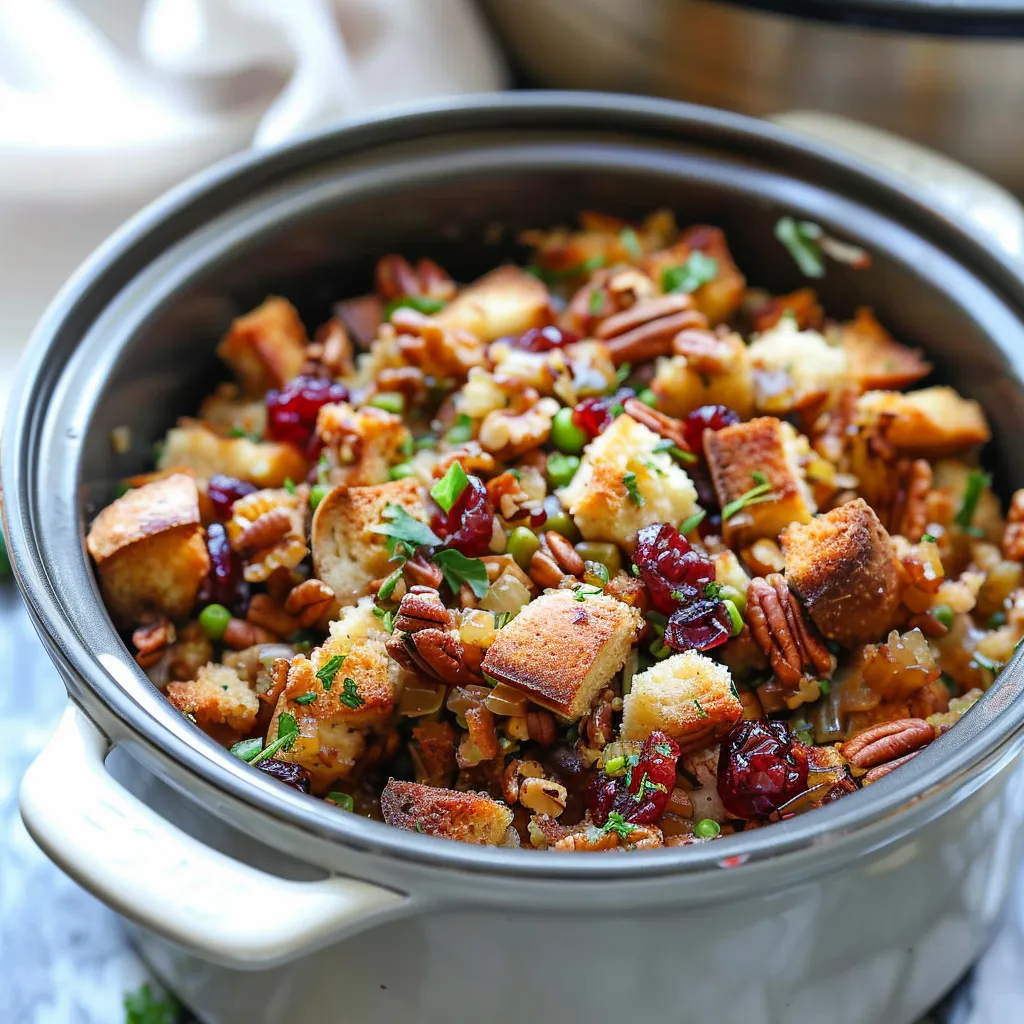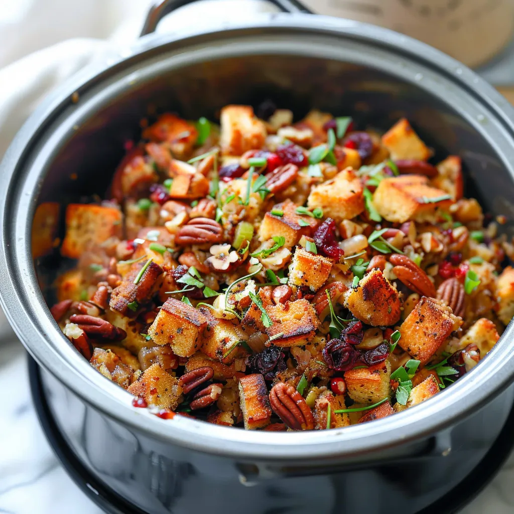 Discover an irresistible slow cooker cranberry pecan stuffing recipe perfect for your holiday feast Easy delicious and a crowdpleaser