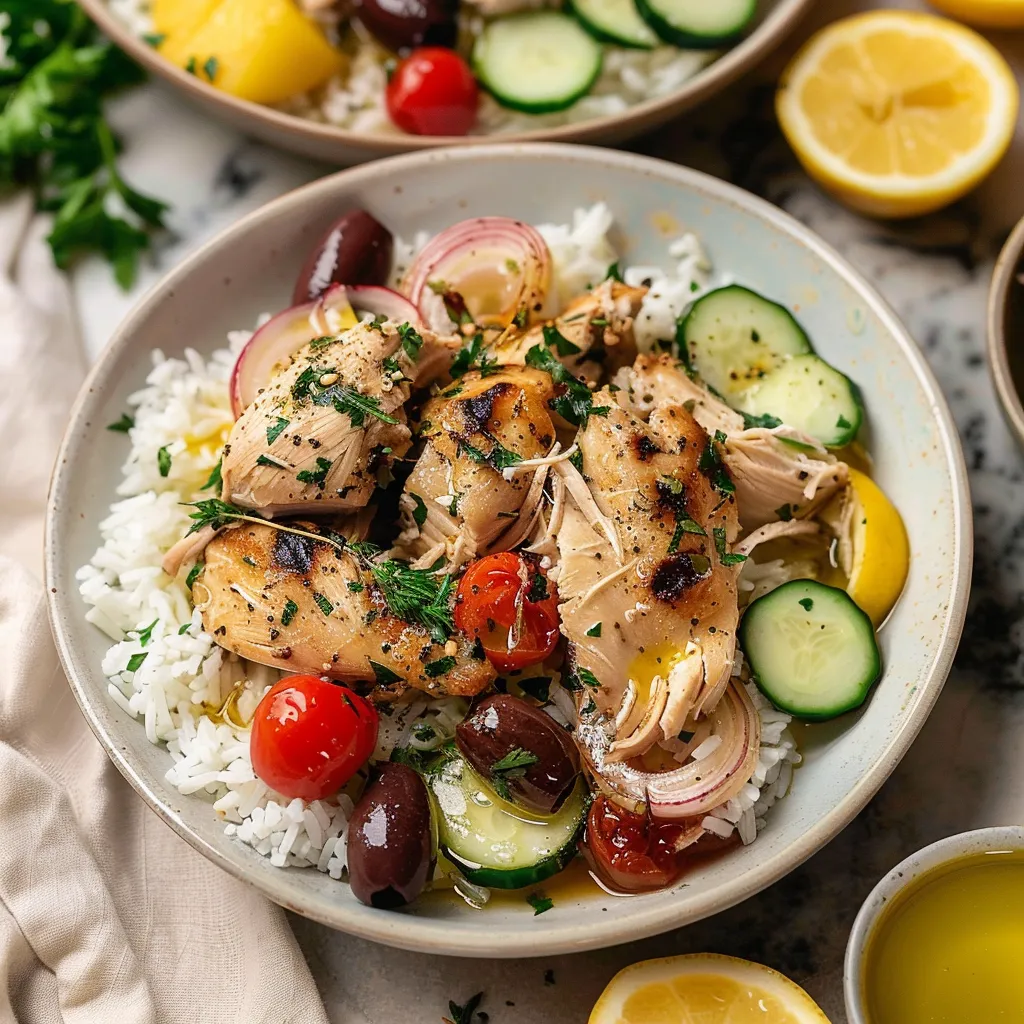 Let’s talk flavor! Picture succulent pieces of chicken bathed in a bright, zesty marinade of lemon, garlic, and fragrant herbs. The chicken becomes meltingly tender as it cooks, absorbing all those delicious Mediterranean flavors. Each bite is like a burst of sunshine, with just the right amount of tang from the olives and smooth creaminess from the feta cheese (if you choose to add it). The aroma itself is enough to make you weak in the knees, filling your kitchen with hints of oregano and thyme. It’s practically an invitation to gather around the table and enjoy a meal that nourishes both body and soul. This dish really is the warm hug of comfort food, perfect for any occasion.