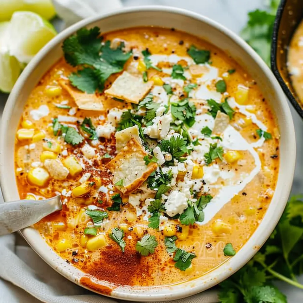 Imagine a bowl filled with luscious corn kernels, creamy broth, and spices that dance on your palate. The soup’s base is rich and hearty, complemented by the sweetness of the corn and the tanginess of lime juice. The smoky notes from spices and the sharpness of cheeses bring it all together, while fresh cilantro adds a bright finishing touch. Each spoonful embodies the essence of comfort food while transporting you to vibrant streets bustling with life.