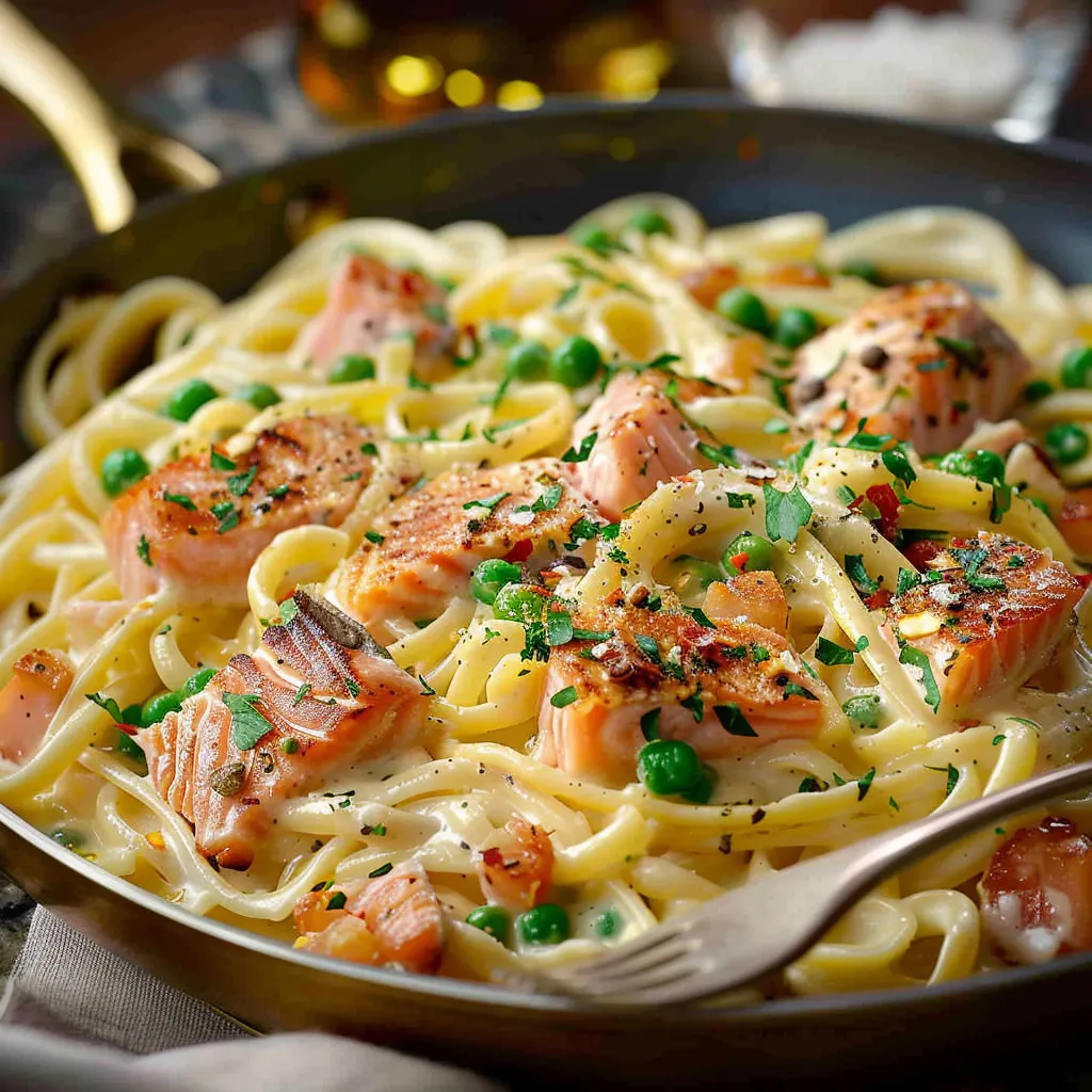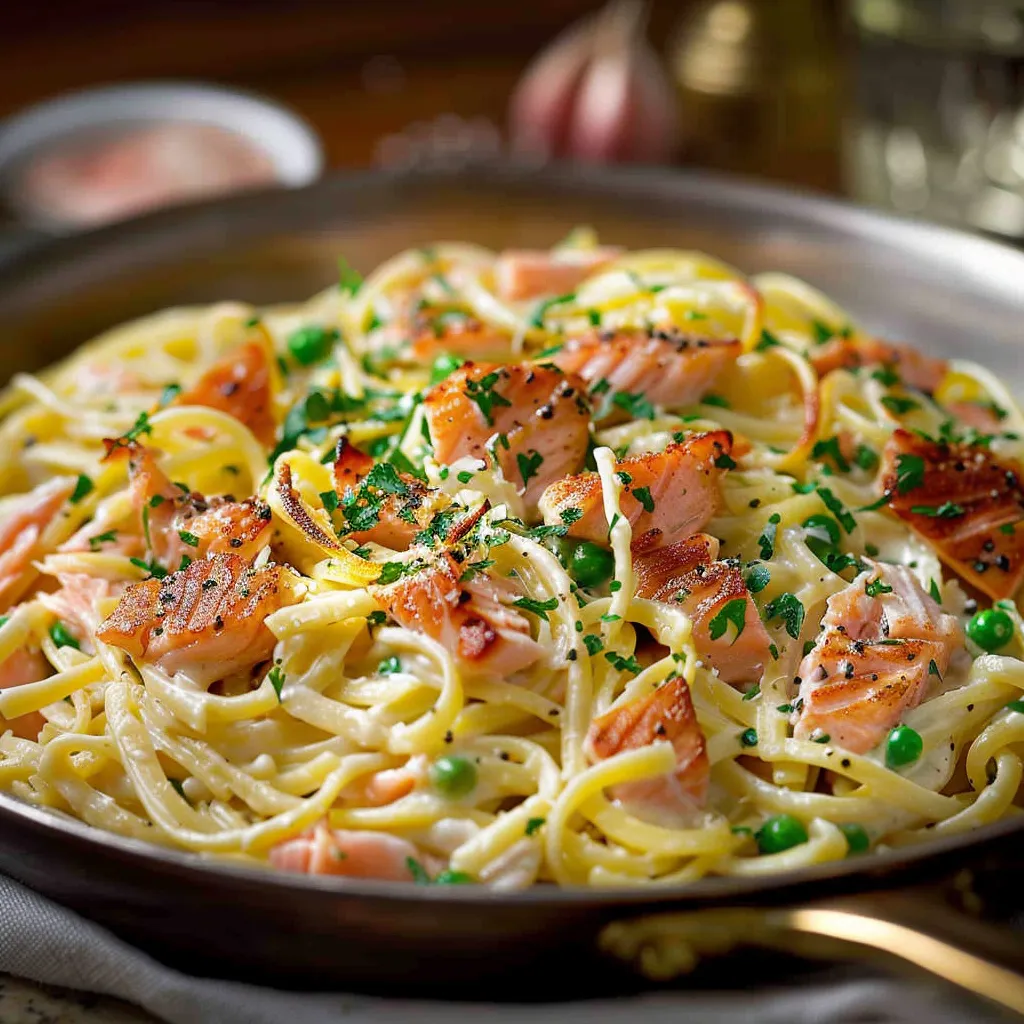 A delicious twist on traditional carbonara featuring smoked salmon, perfect for a cozy night in.