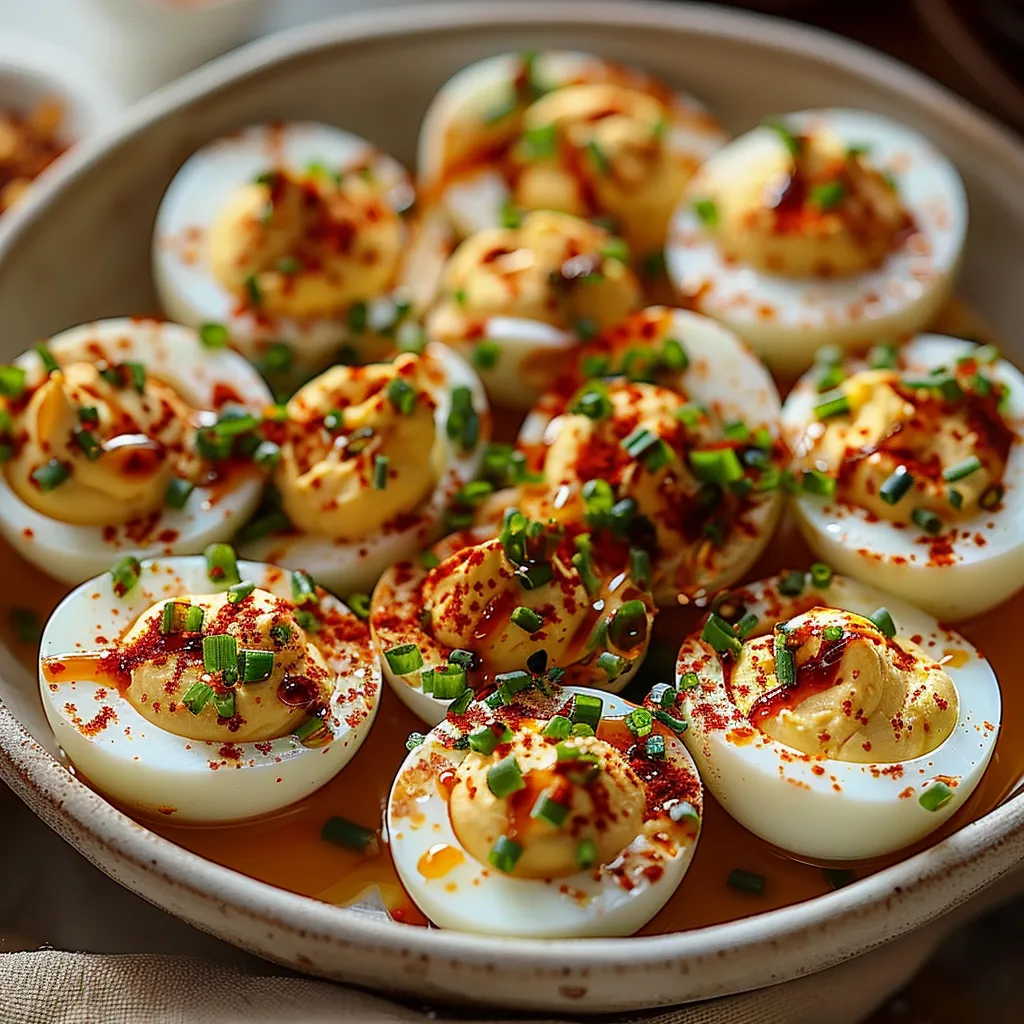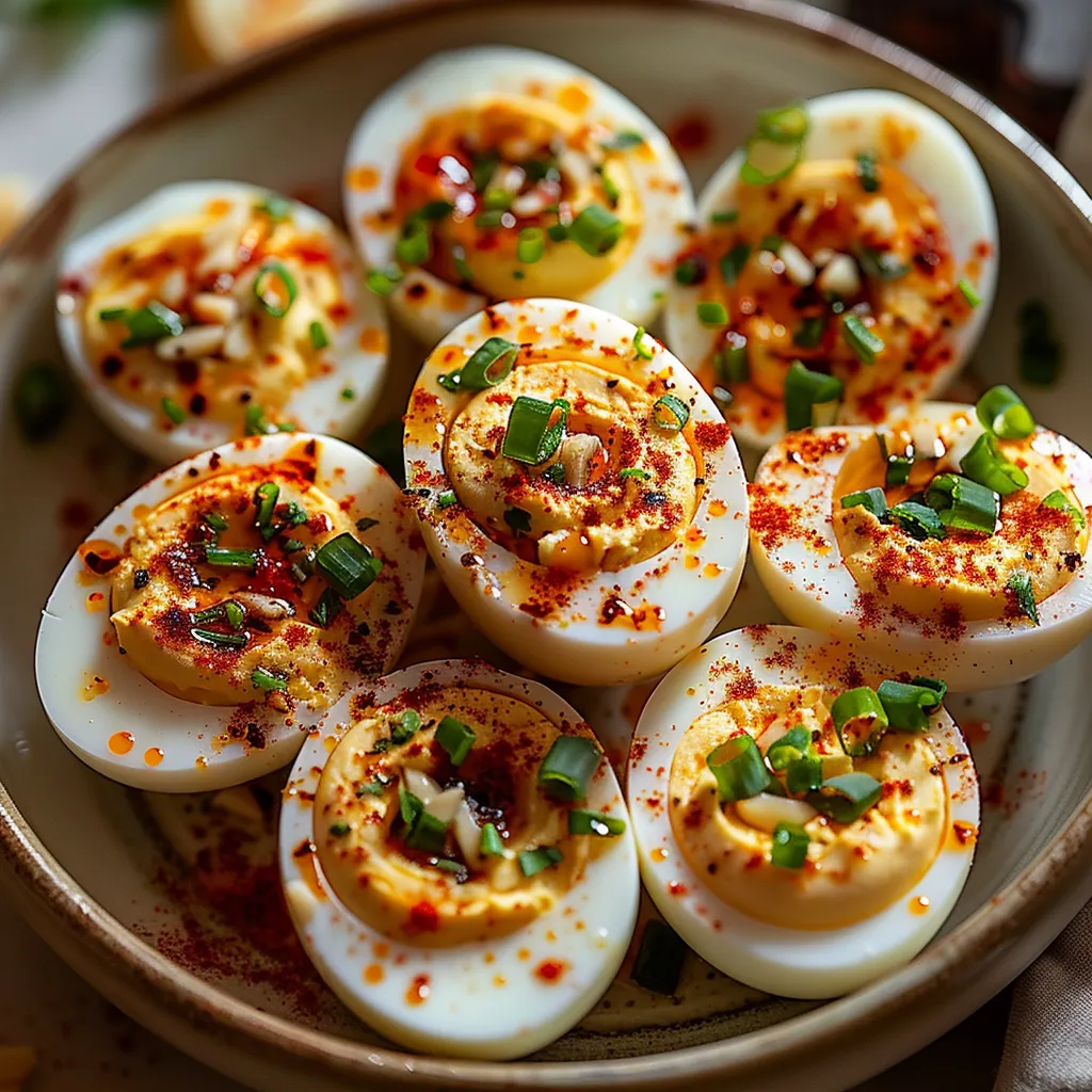 Experience bold flavors with Spicy Chili Garlic Deviled Eggs Perfect bitesized treats for a zesty appetizer or snack Spice up your gatherings