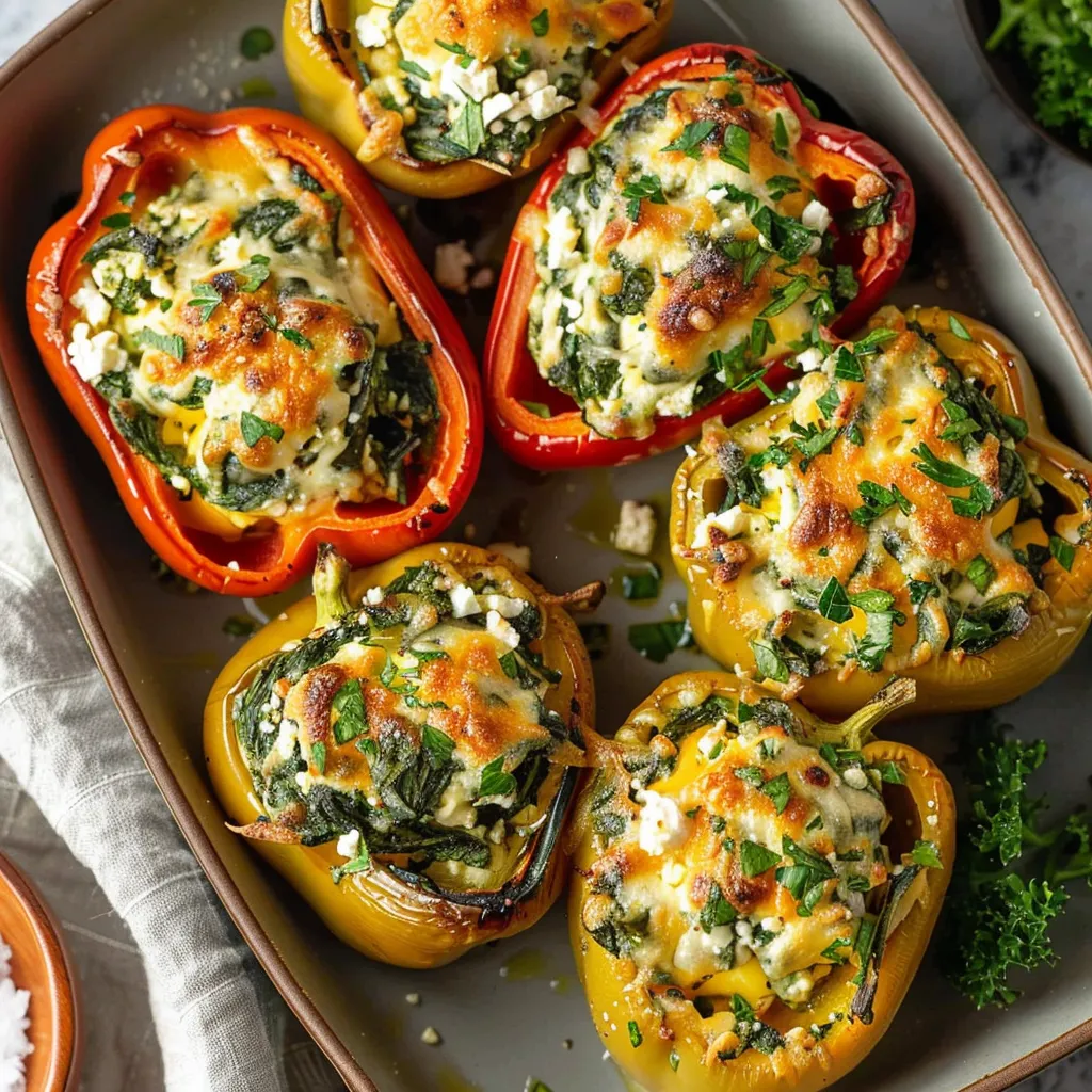 Enjoy this quick easy recipe for delicious spinach and feta stuffed peppers perfect for a healthy meal Packed with flavor its a must-try