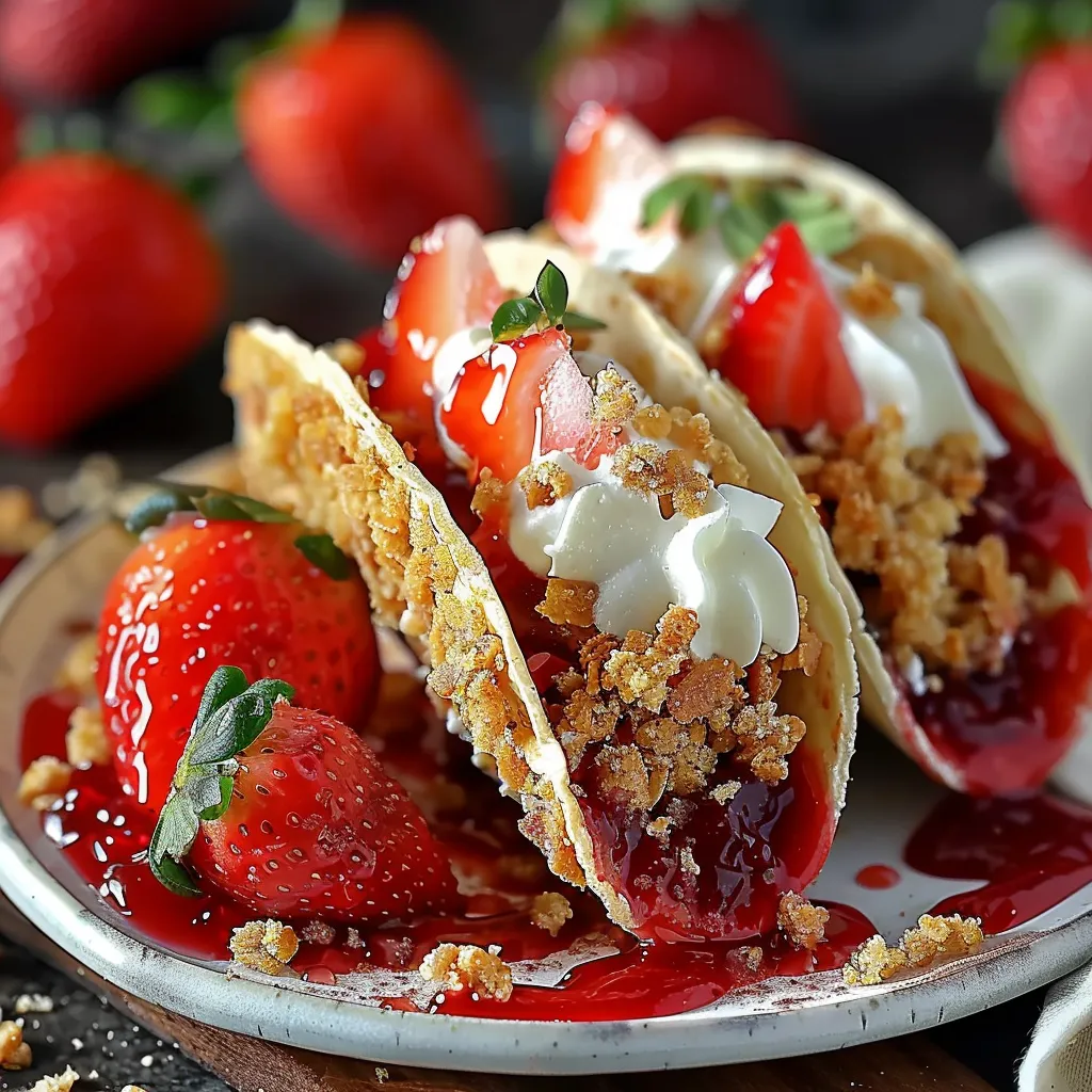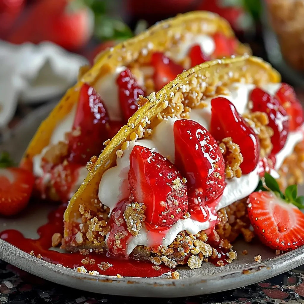 Imagine taking an ever-so-slightly crunchy bite, where the coolness of the cheesecake mingles effortlessly with the juicy strawberries. The first taste feels like wrapping yourself in a cozy blanket on a chilly night; it’s familiar, comforting, and that perfect balance of sweet without being overpowering. The texture of the crunchy topping provides a delightful contrast to the smooth creaminess of the cheesecake. Together, they create a little explosion of happiness in your mouth, like that first sunny day after a long winter. Trust me—you’ll find yourself reaching for another taco before you even realize it!