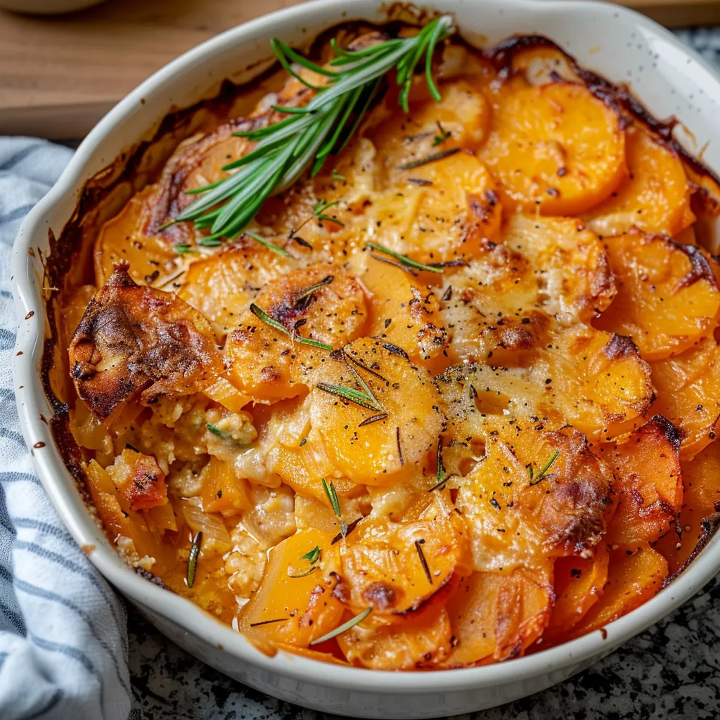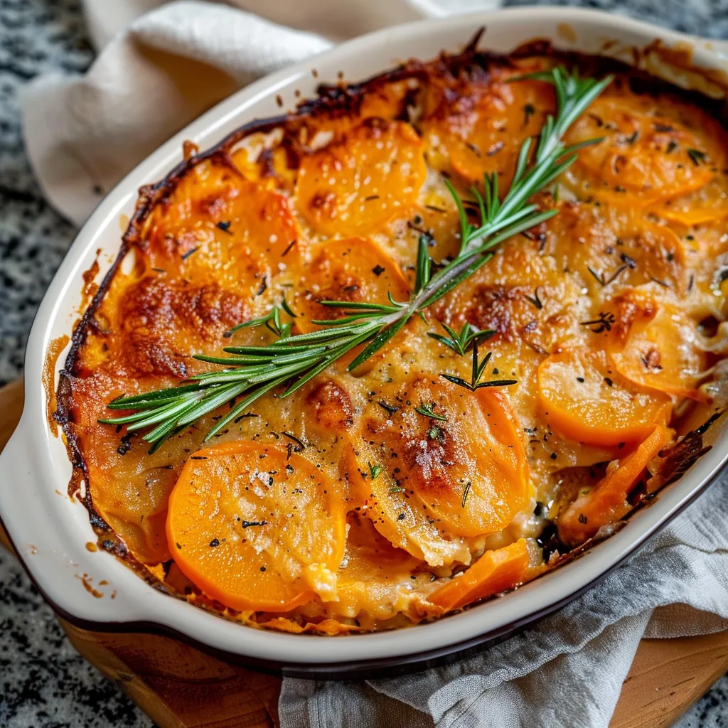 Irresistible Sweet Potato Gratin with Smoked Gouda Rosemary