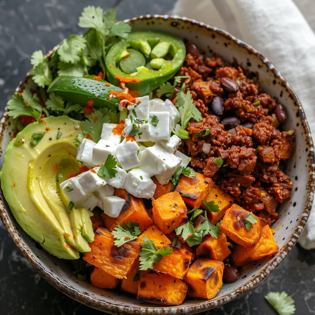 A well-crafted Sweet Potato Taco Bowl is an explosion of flavors! The caramelized sweetness of roasted sweet potatoes complements the earthy, creamy black beans. A squeeze of lime brightens every bite, while fresh toppings like diced avocado and chopped cilantro add layers of freshness. The taco seasoning gives it that classic zesty kick that pulls everything together, creating a harmonious balance of flavors that will leave your taste buds dancing.