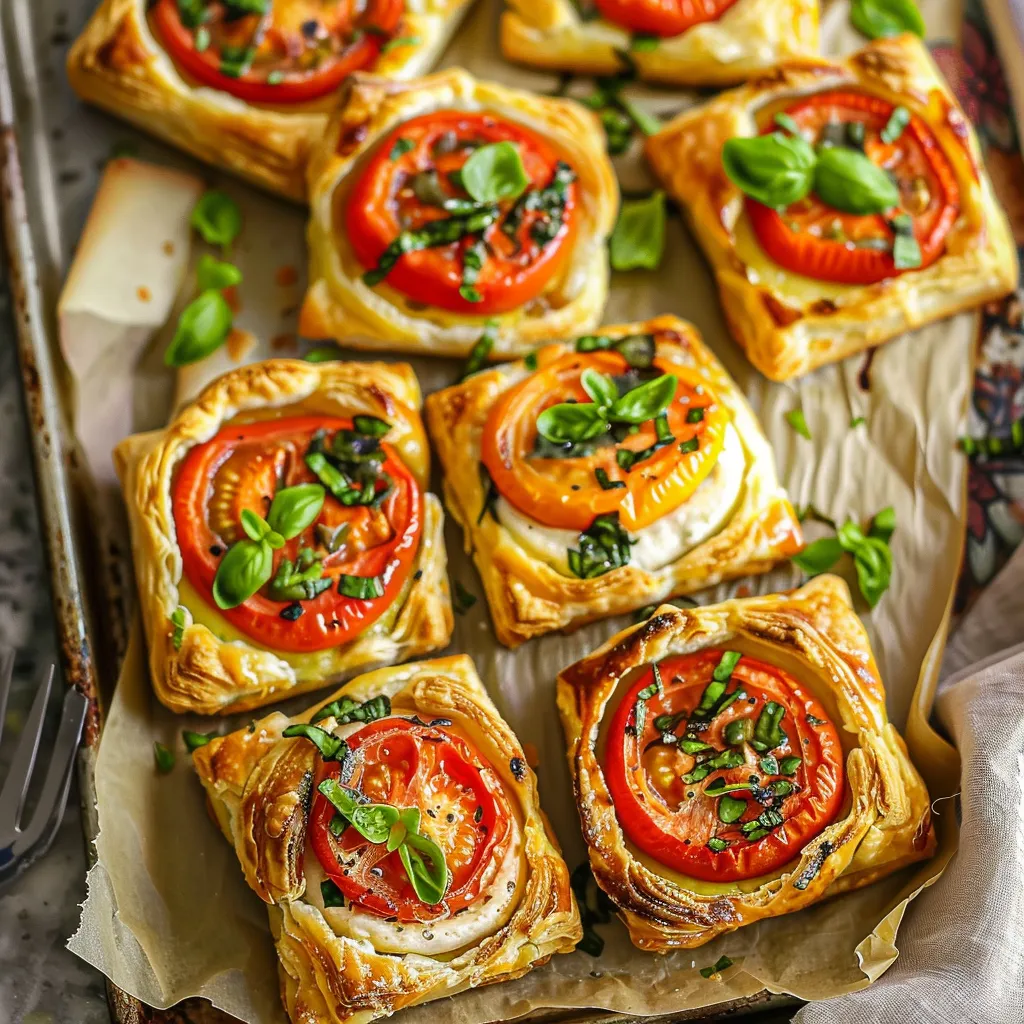 Ah, where do I even begin? Imagine breaking through that perfectly crispy outer shell—flaky yet sturdy, like a beautiful winter blanket draped over the vibrant filling. Inside, the tomatoes are softened and gently caramelized, their sweetness intensified, mingling with the salty, creamy goodness of cheese. Each bite dances on your palate, with the buttery richness of the puff pastry providing a lovely contrast to the fresh vibrancy of the tomatoes.