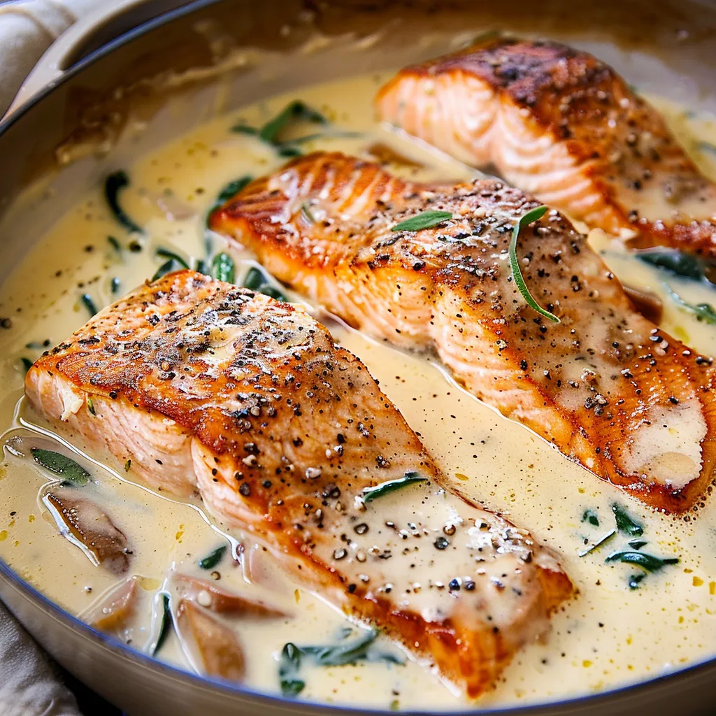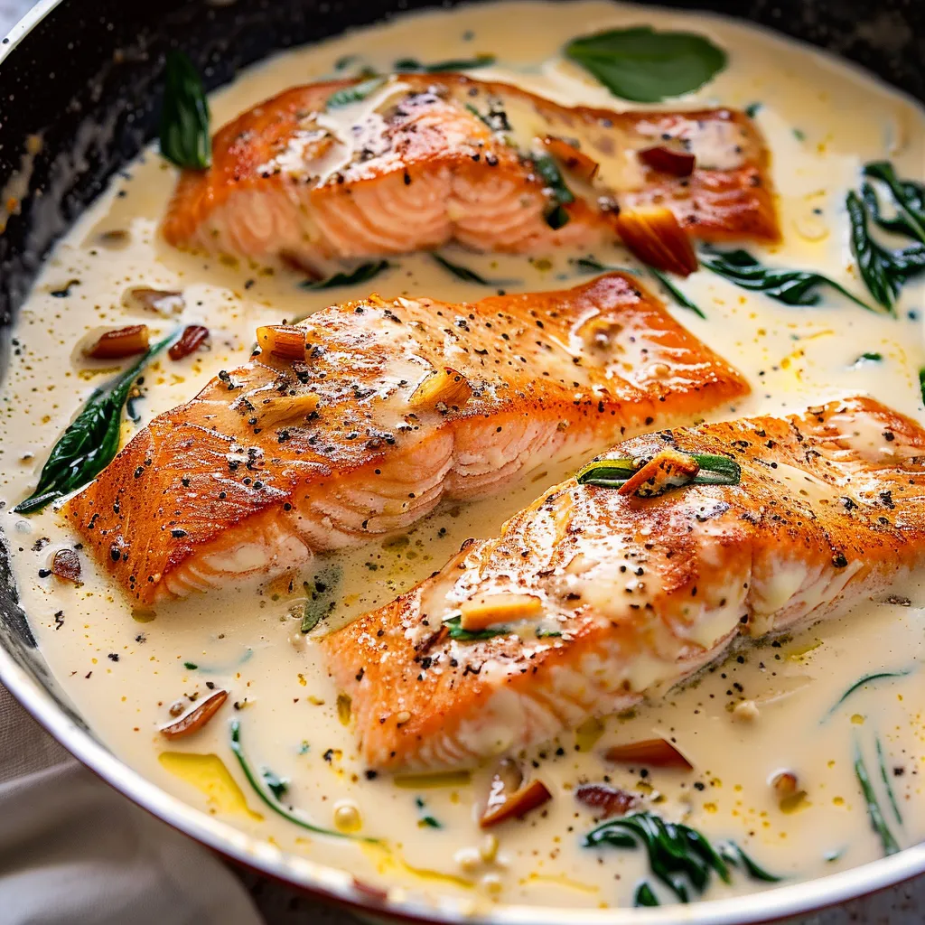 - 4 salmon fillets (about 6 oz each): This is the star! Salmon has a rich and buttery flavor that pairs beautifully with creamy sauces.