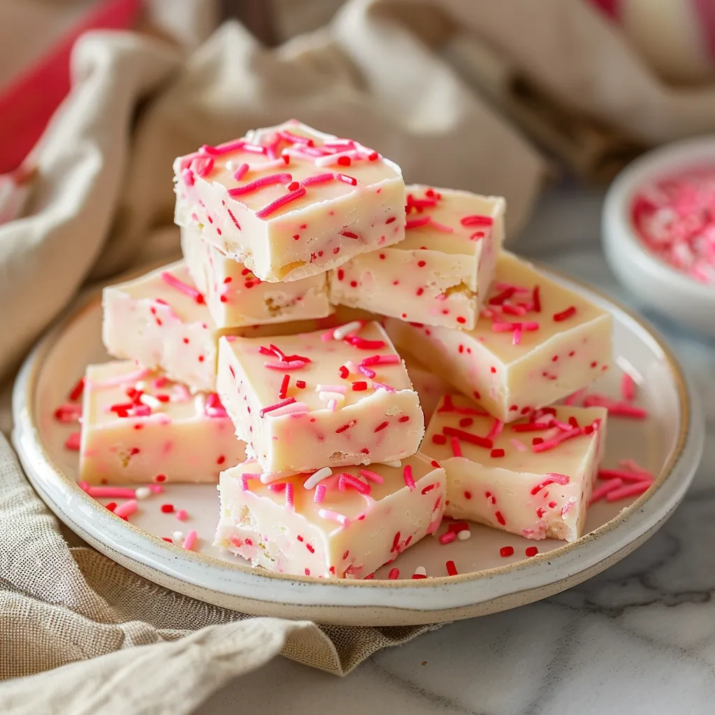 This Valentine’s Day Sugar Cookie Fudge is a delightful mash-up of chewy sugar cookies and creamy fudge, topped with colorful sprinkles. It’s perfect for celebrating love with sweet treats.