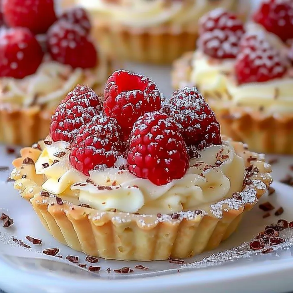 Indulge in the delightful taste of these homemade white chocolate mousse tartlets, perfect for any occasion.
